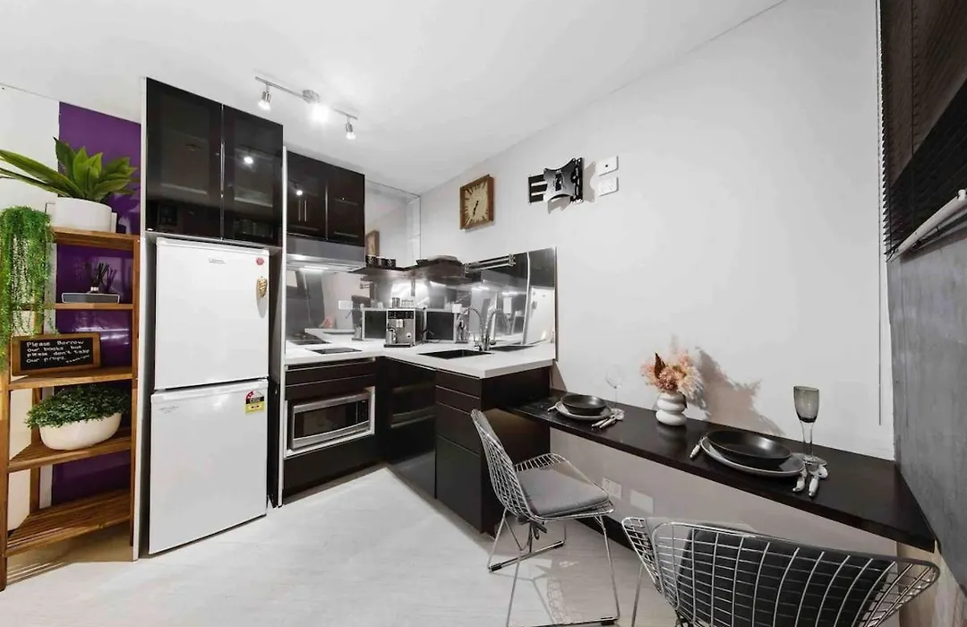 A fully equipped kitchen with coffee and tea making facilities, a refrigerator, and a stove top is among the self-catering amenities provided. The apartment is a short way from Flinders Street train station.